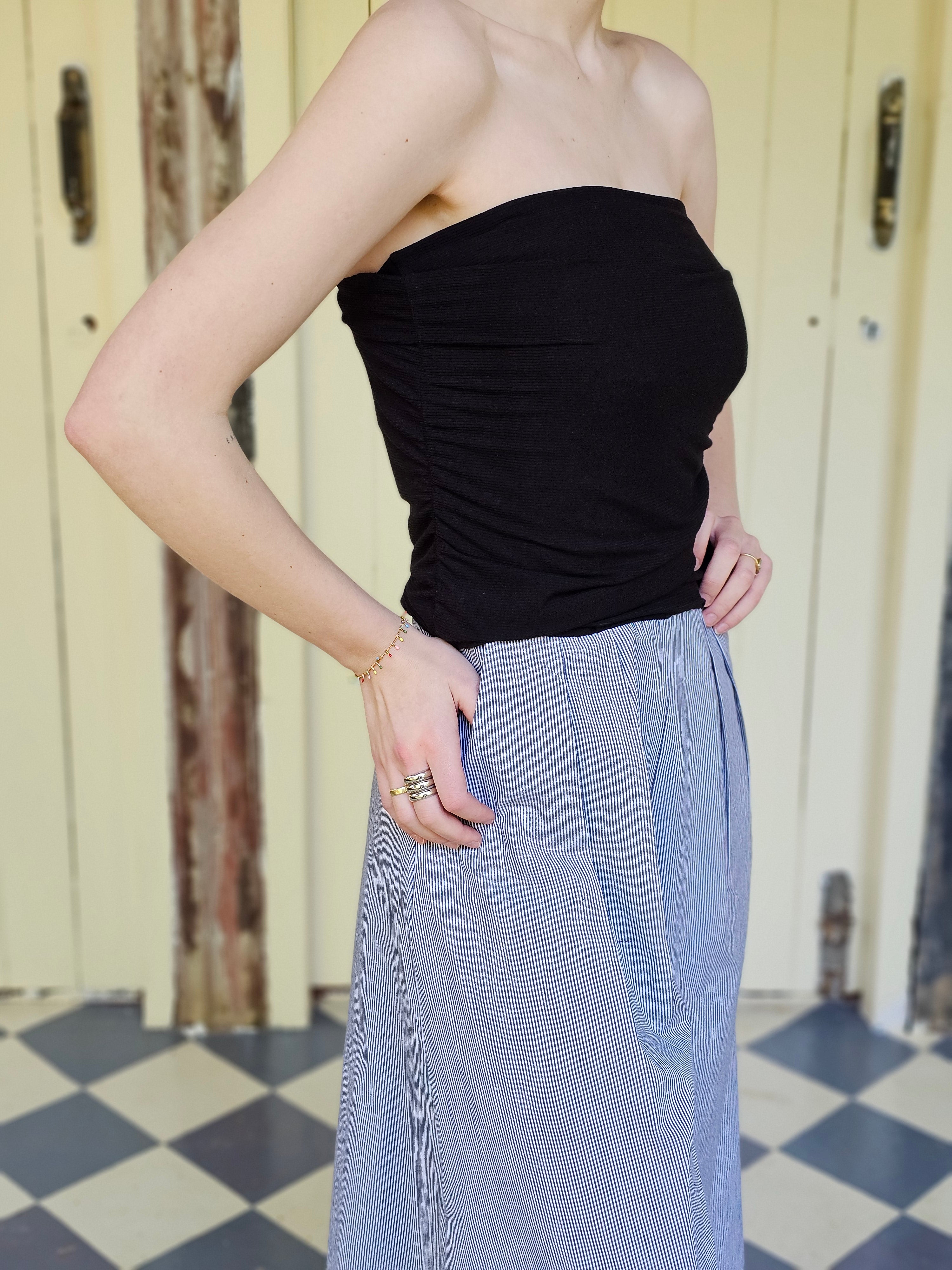 Style: Boobtube Midi Jumpsuit with an A-line cut. Side pockets with front pleats. Lined bodice piece for extra support