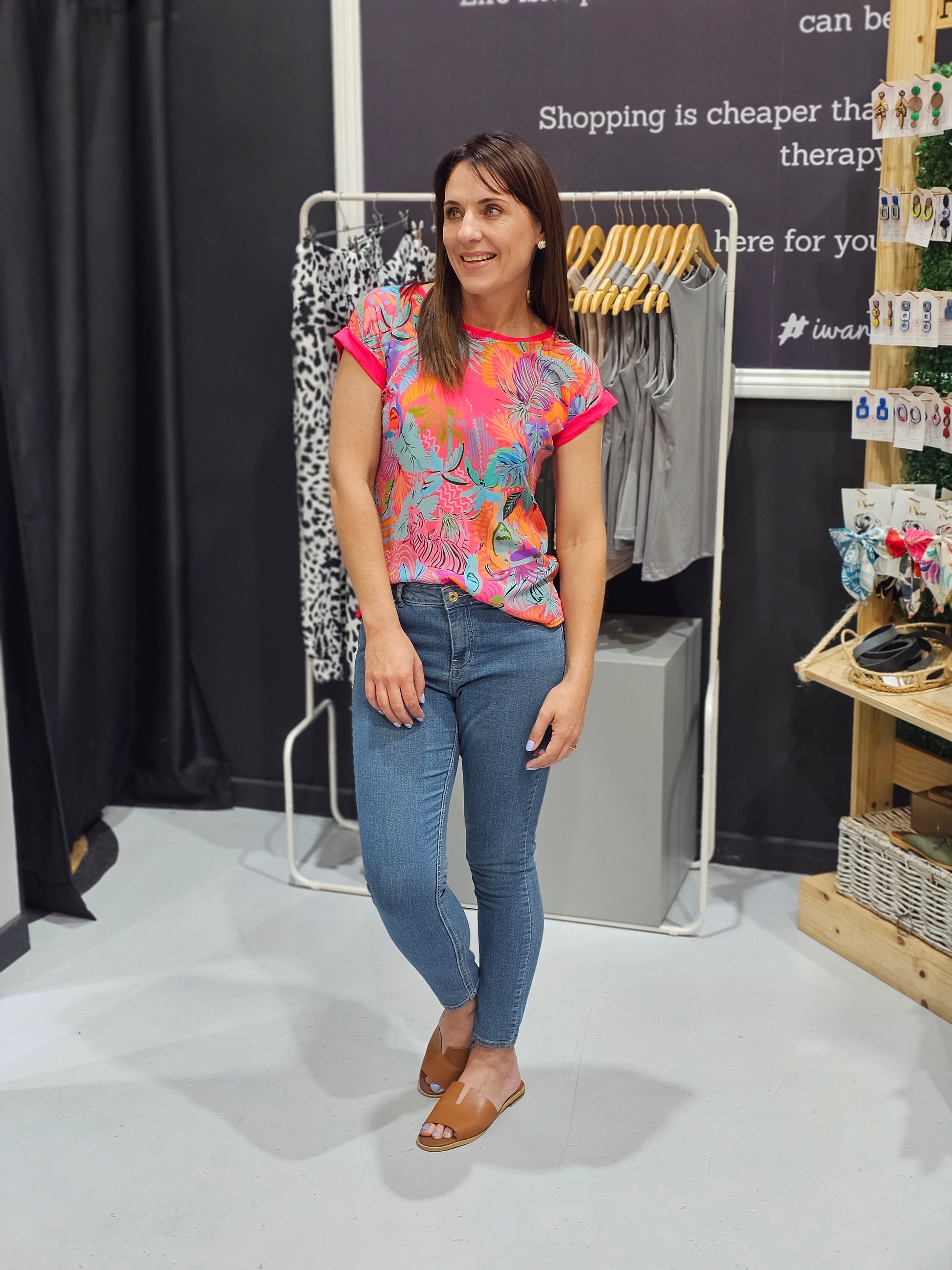 Style: Turn-up style sleeve, round neck-line t-shirt. Length from underarm to hem= 40cm